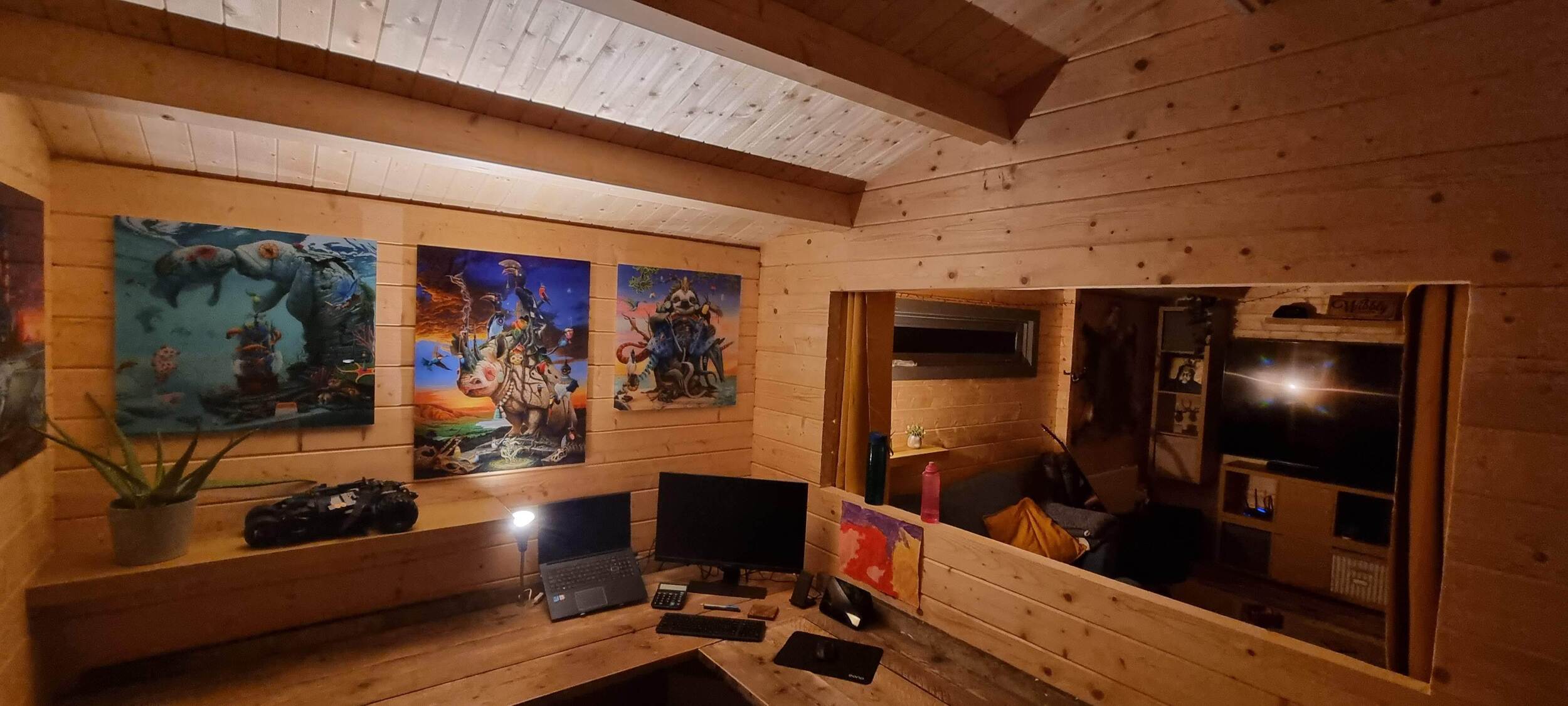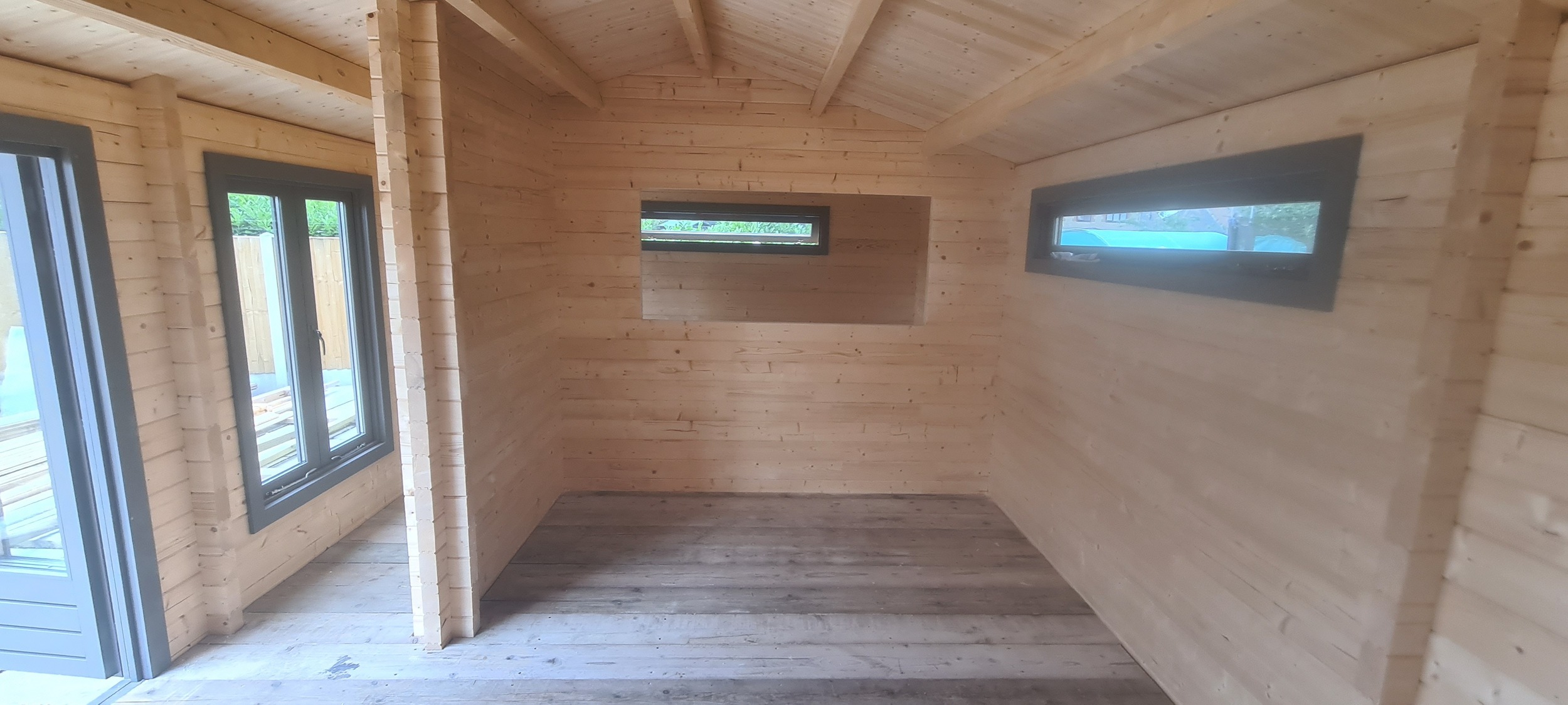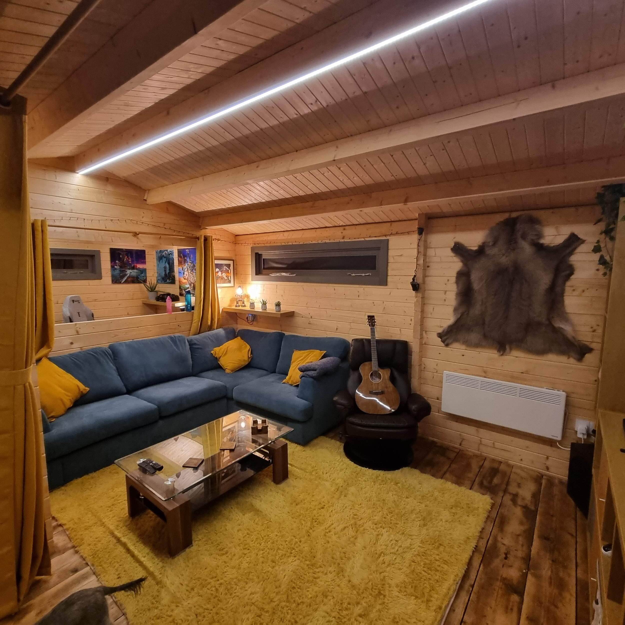 The project involved designing and constructing a 7m x 4m garden office that also incorporated a dedicated space for relaxation and entertainment, including a TV viewing area. The primary objective was to create a functional workspace that could be used for professional activities while providing a comfortable environment for leisure. The design needed to balance both work and relaxation zones, ensuring that the workspace was efficient and conducive to productivity, while the relaxation area was cozy and inviting for downtime. The office was equipped with essential features like electrics, internet, adequate lighting, while the relaxation area included seating, a TV, and a soft, comfortable ambiance for unwinding after a busy workday.